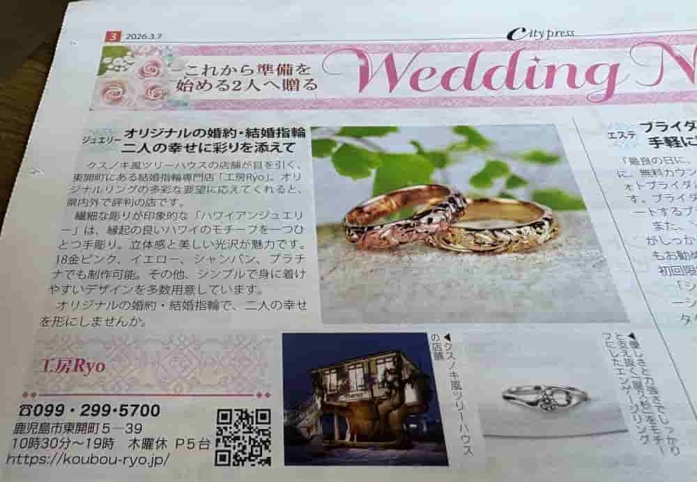 ゼクシィ(鹿児島・宮崎)に工房Ryoの結婚指輪が掲載!(9/23発売)