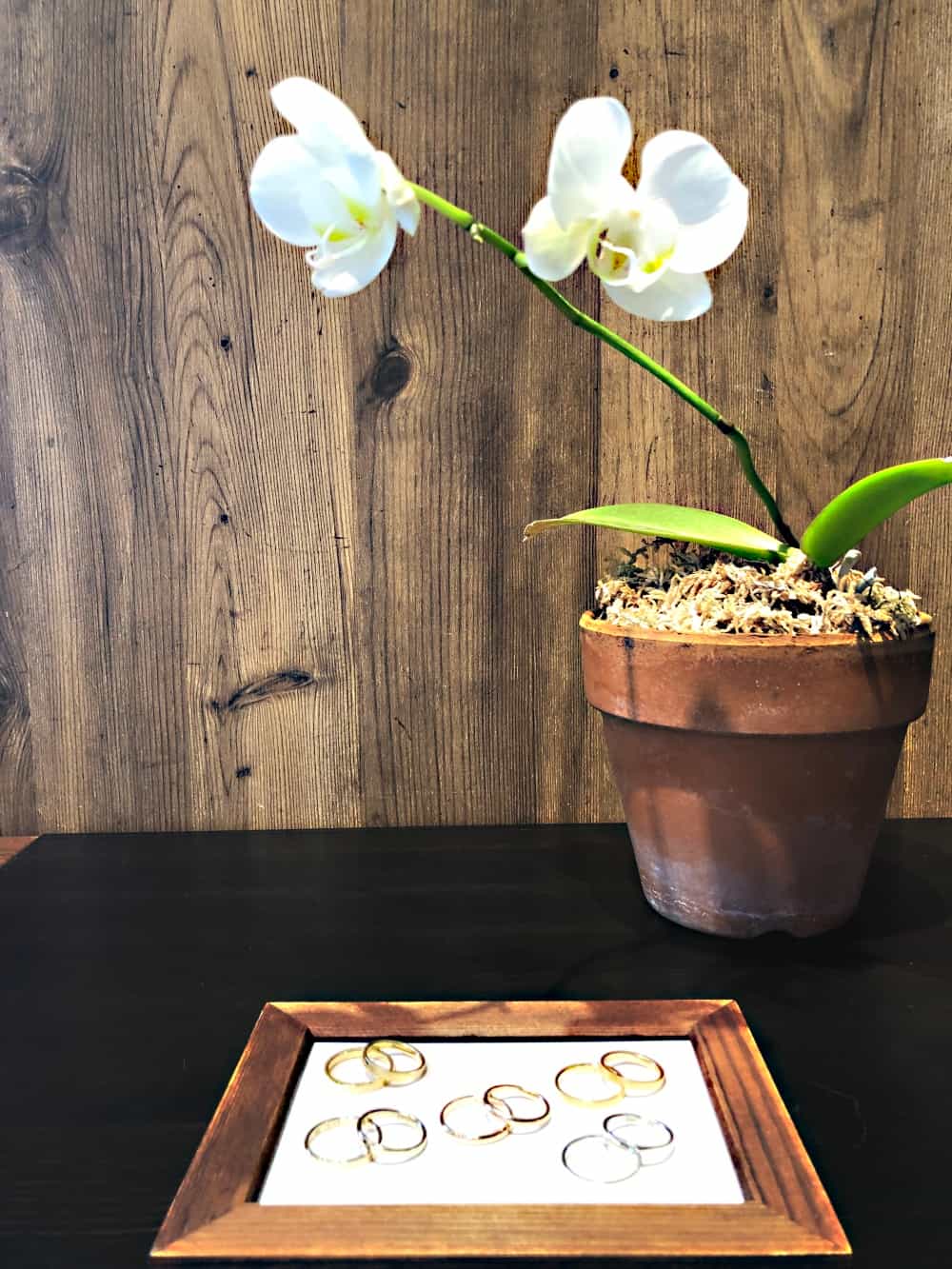 結婚指輪と胡蝶蘭
